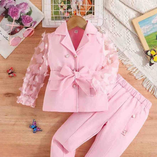 Elegant Girls' Blazer Set – Light Pink Formal Suit with Butterfly Sleeves.
