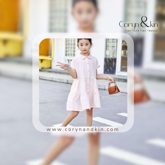 Pastel Peach Button-Down Frock Dress for Girls (3–7 Years)