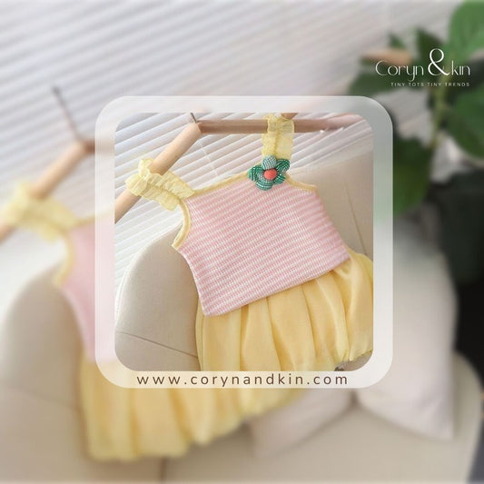 Baby Bliss Girl Co-ord Set – Soft Yellow & Candy Pink (0–3 Years)