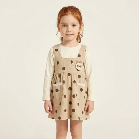Polka Dot Baby Girl Dress Set with Full Sleeve Top | Cotton Outfit (0–3 Years) | Coryn & Kin