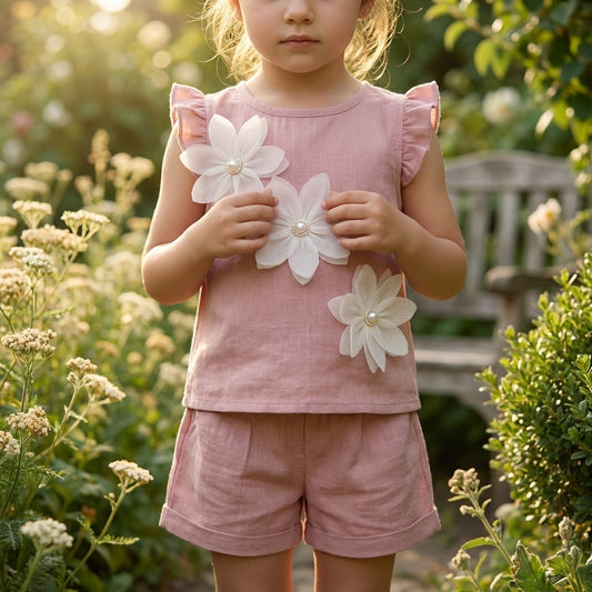 Blush Pink Floral Baby Girl Top & Shorts Set | Elegant Cotton Outfit (0–3 Years) | Coryn & Kin