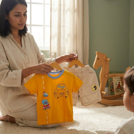 Yellow Car Print Boys T-Shirt & Shorts Set | Cotton Summer Outfit (1–5 Years) | Coryn & Kin