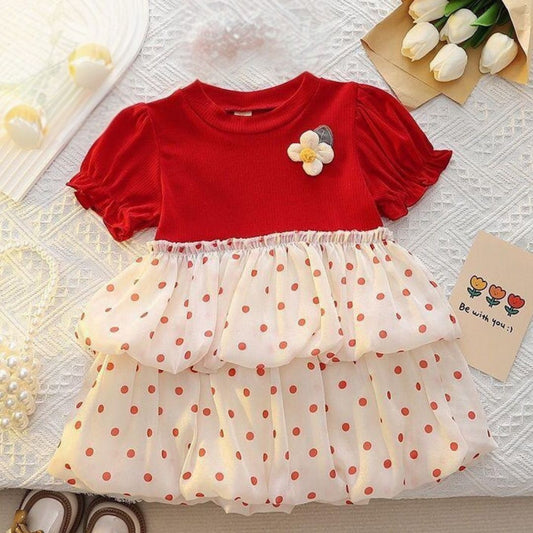 Cherry Pop Polka Dot Baby Dress – Red & White Delight (0–3 Years)