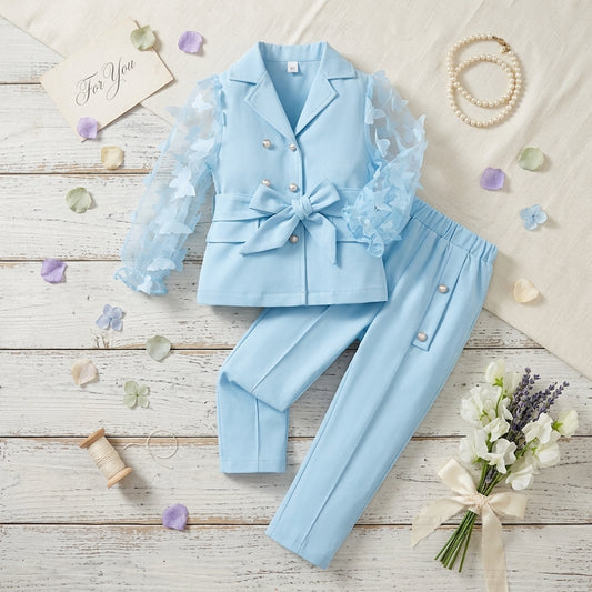 Sky Blue Girls Blazer Co-ord Set with Sheer Sleeves | Elegant Party Outfit (3–7 Years) | Coryn & Kin